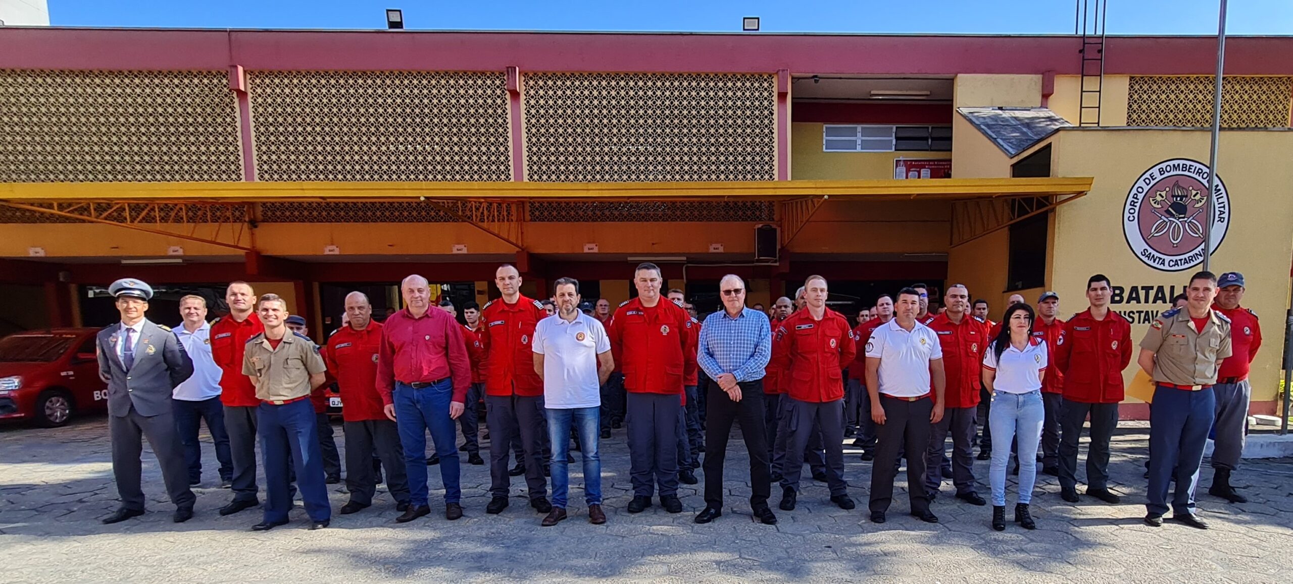 Comandantes e presidentes das filiadas a ABVESC reunidos no 3º Batalhão de Bombeiro Militar para retirada dos equipamentos