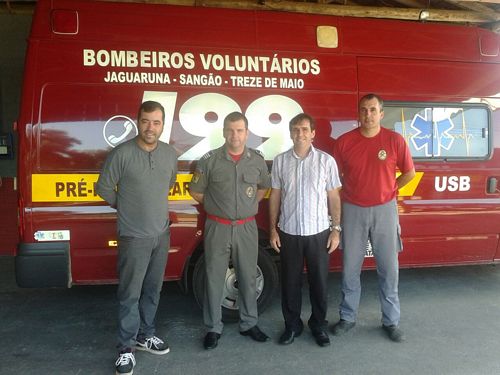 Na última sexta feira(24) a 41ª unidade de bombeiros voluntários de Santa Catarina, sediada em Jaguaruna recebeu a visita do vereador Marcelo Marcon do município de Pedras grandes. A visita seria ainda completada por outros lideres políticos incluindo o prefeito que por outros compromissos de agenda não puderam comparecer.A intenção da visita foi conhecer o modelo de bombeiro voluntário de Santa Catarina, modelo este que é muito forte na região norte do estado. Jaguaruna é a única cidade da região sul que possui este modelo.O vereador foi recebido na corporação pelo comandante operacional Ugo Leonardo Medeiros juntamente com o Vereador Alicio Bittencourt de Jaguaruna e demais bombeiros que estavam de plantão. Toda a instalação e equipamentos foram apresentados ao representante da cidade que fez questão de frisar o profissionalismo nos atendimentos que a corporação presta, sendo notável diariamente os trabalhos por meios de comunicações locais.A cidade de Pedras Grandes atualmente não possui nenhum modelo de bombeiro, dependendo assim de atendimento de corporações de outras cidades, o que geralmente acaba demorando muito para que as viaturas cheguem até la.